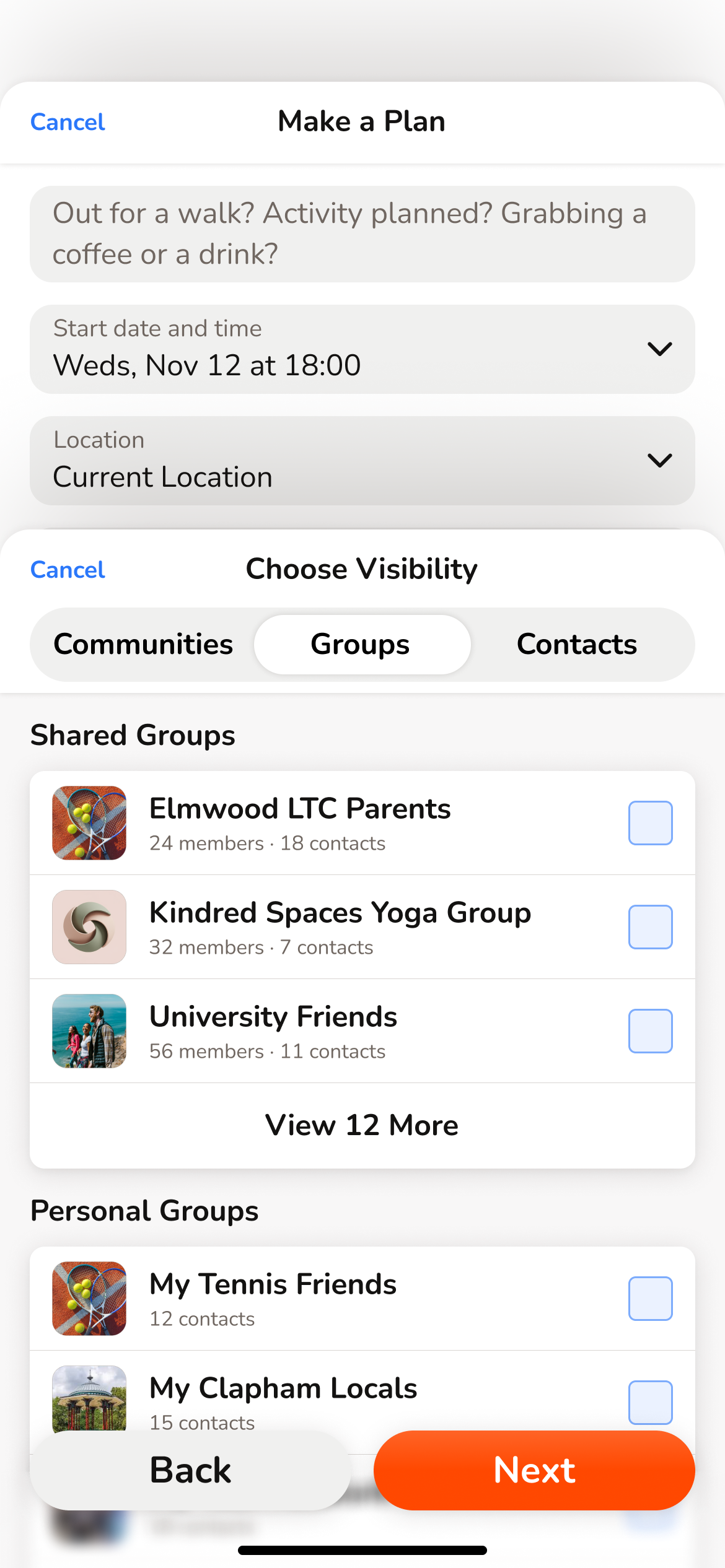 Make personal and shared groups based on your interests and their proximity.